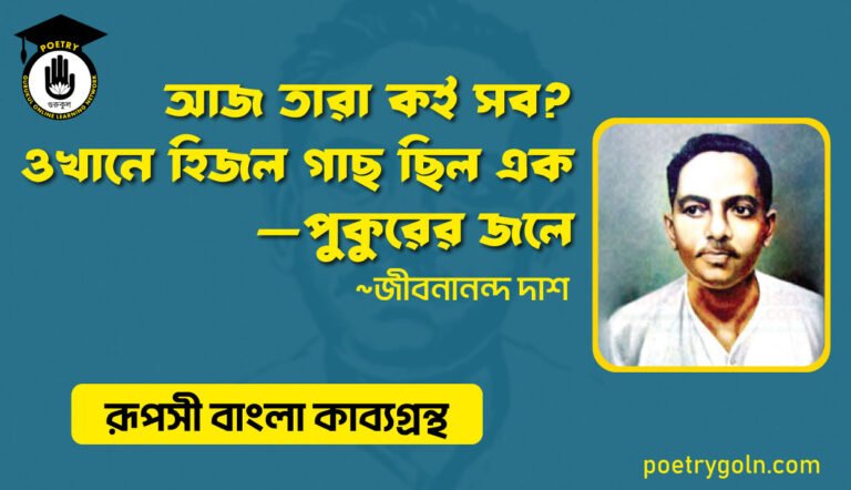 আজ তারা কই সব? ওখানে হিজল গাছ ছিল এক—পুকুরের জলে – কবিতাটি রূপসী বাংলা কাব্য গ্রন্থের অন্তর্গত । এই কাব্যগ্রন্থ …